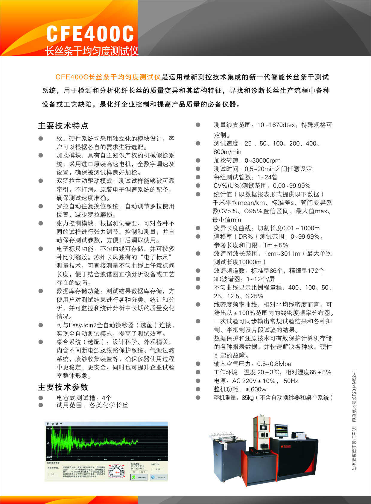 產(chǎn)品名稱: CFE400C 全自動(dòng)長(zhǎng)絲條干測(cè)試系統(tǒng)